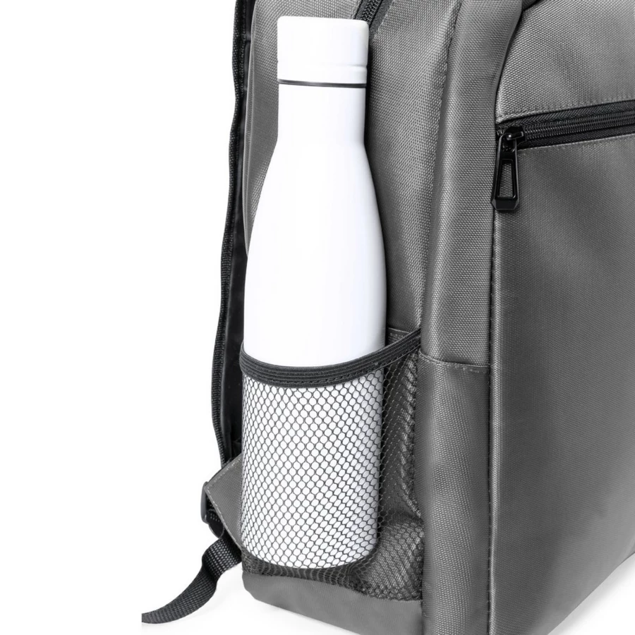 High quality backpack made of 420D RNYLON. Main compartment with matching zip closure and double puller. Including outside zipped pocket and 2 side mesh pockets. Padded handle, back, and shoulder straps, the latter adjustable. Inside with padded laptop compartment for laptops up to 15 inches and backside attachment for trolley fitting. Available in a wide range of colours, with the recycled distinctive on the outside label.RNYLON material is made from recycled plastic, to encourage the reuse of plastic waste and help the sustainability of the planet.