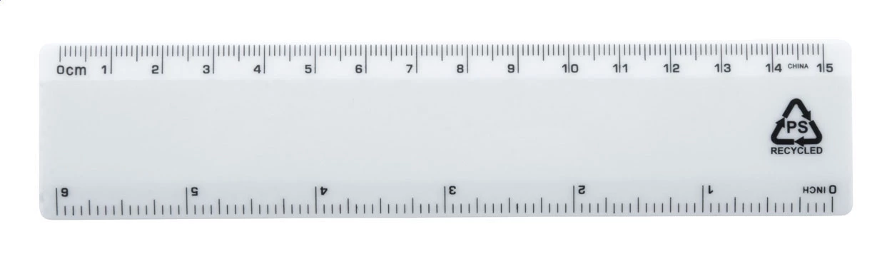 Recycled PS plastic ruler, 15 cm.