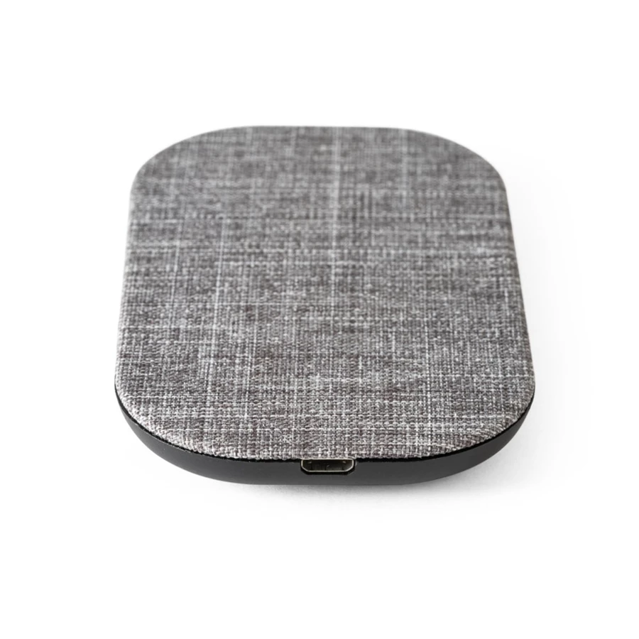 Fast wireless charger made from recycled PET (100% rPET). 10W maximum wireless charging power for fast charging. Compatible with devices with wireless charging technology. Includes a 1 m USB-C cable. Supplied in a kraft paper gift box. 100 x 62 x 10 mm