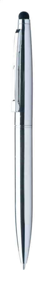 Metal ballpoint and touch screen pen in shiny metallic finish. With blue refill.