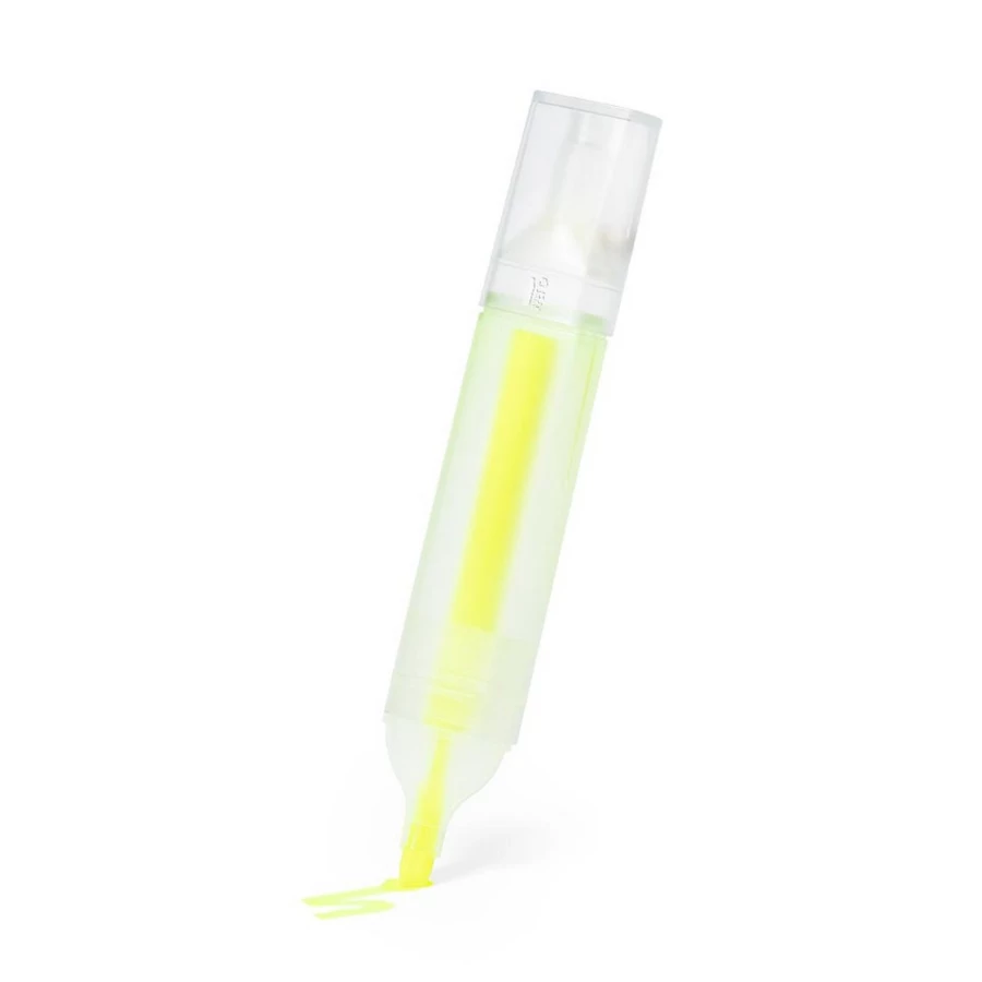 Nature line highlighter made of RPET, made from recycled plastic to promote the reuse of plastic waste and help the sustainability of the planet. With transparent body and matching cap. With RPET logo printed on the marker.