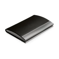 Mirrored metal and PU business card holder. Supplied in a gift box. 95 x 65 x 13 mm | Box: 105 x 70 x 15 mm