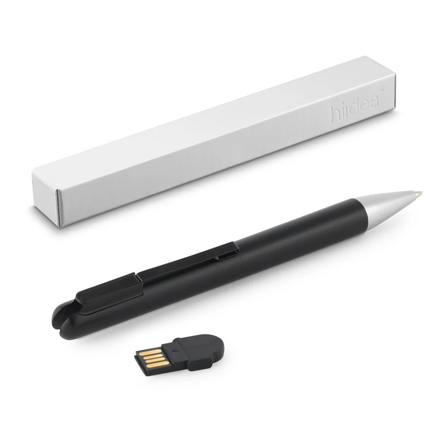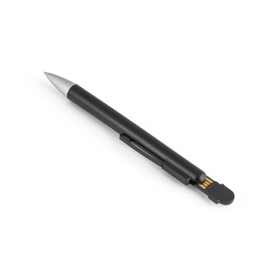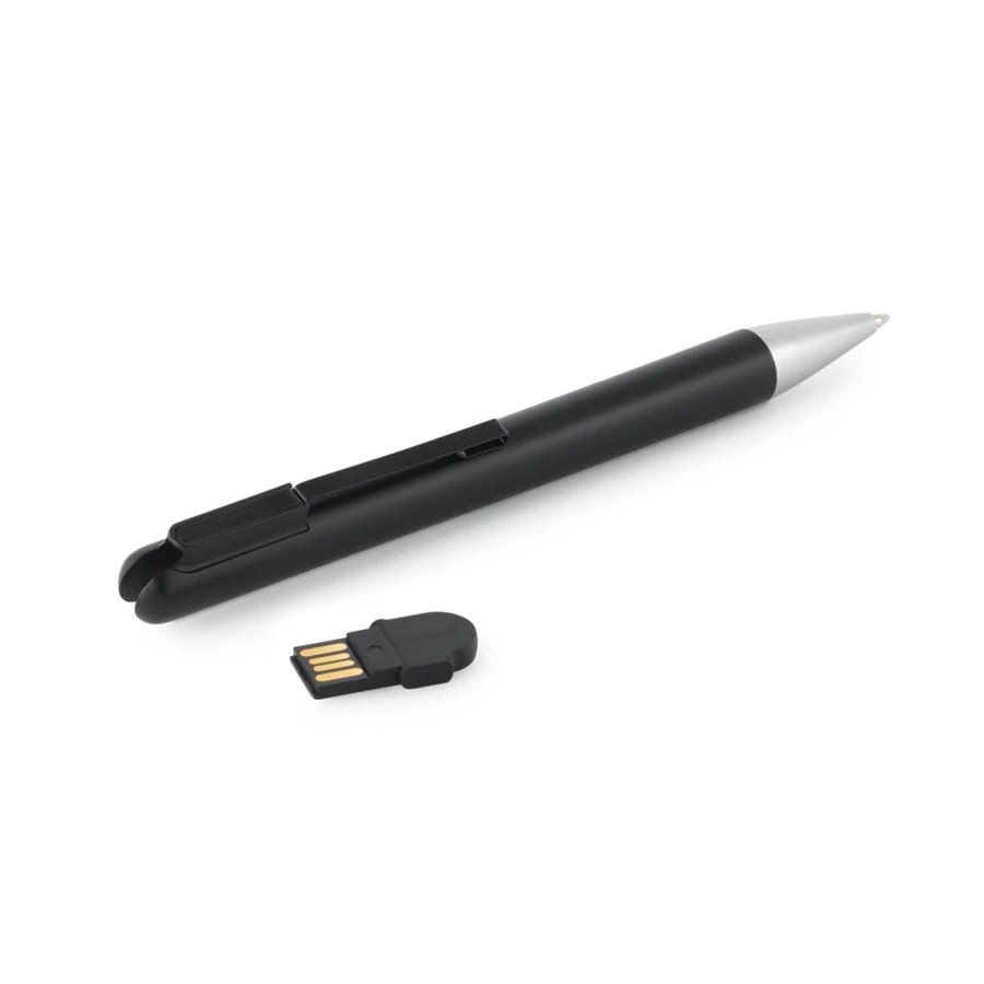 Ballpoint pen with UDP memory and clip. The UDP memory can be stored inside the ballpoint pen.Applicable taxes: Spain - USB Tax: 0.24€/Unit., Denmark - Copydan tax: 5.81 DKK/un.Material:ABSClip: metalCapacity: 4 GBWriting: blackDelivery: gift box (unassembled)Dimensions: ø12 x 144 mm | Case: 150 x 15 x 19 mm