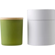 Fragrance perfumed candle (02-vanilla, 05-cinnamon, 03-sandalwood, 06-jasmine), contains mainly plant-based wax (carnauba wax), burning time approx. 20h, in glass jar with bamboo lid