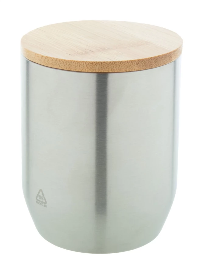 Double-wall, recycled stainless steel thermo cup with bamboo lid, 300 ml.