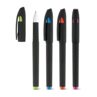 Ball pen with rubber soft touch finish. ABS cap and clip, colourful trim and anti-slip grip. Black gel ink. ø13 x 143 mm
