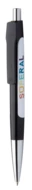 Plastic ballpoint pen with shiny chrome parts and large printing surfaces on the barrel. With blue refill.