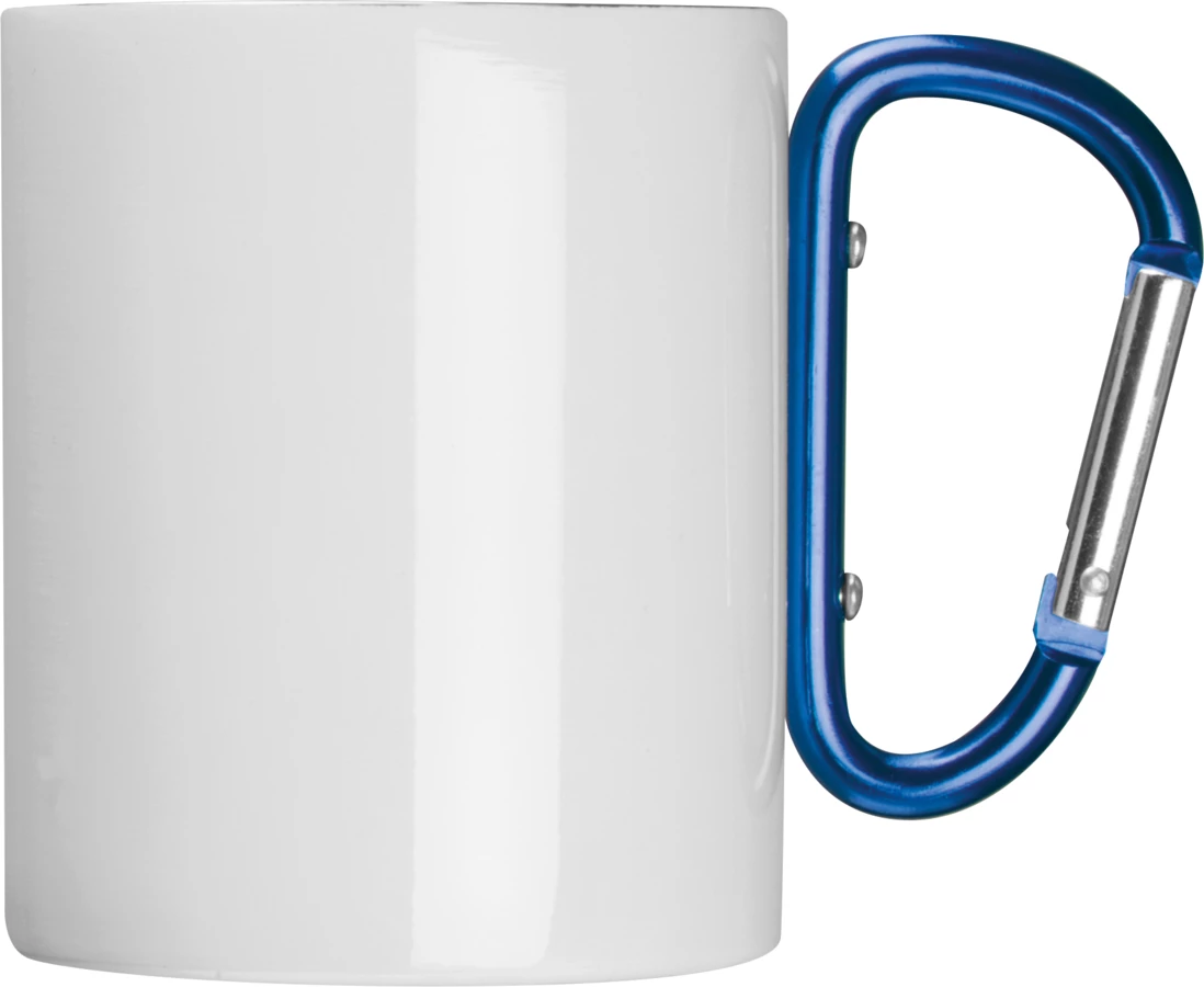 Drinking cup made of stainless steel with colored aluminum carabiner and a capacity of 280ml. We will print your logo all around the cup using sublimation printing.