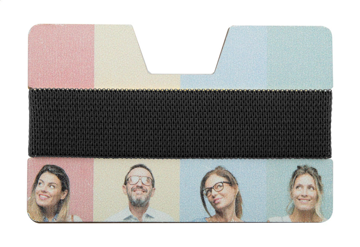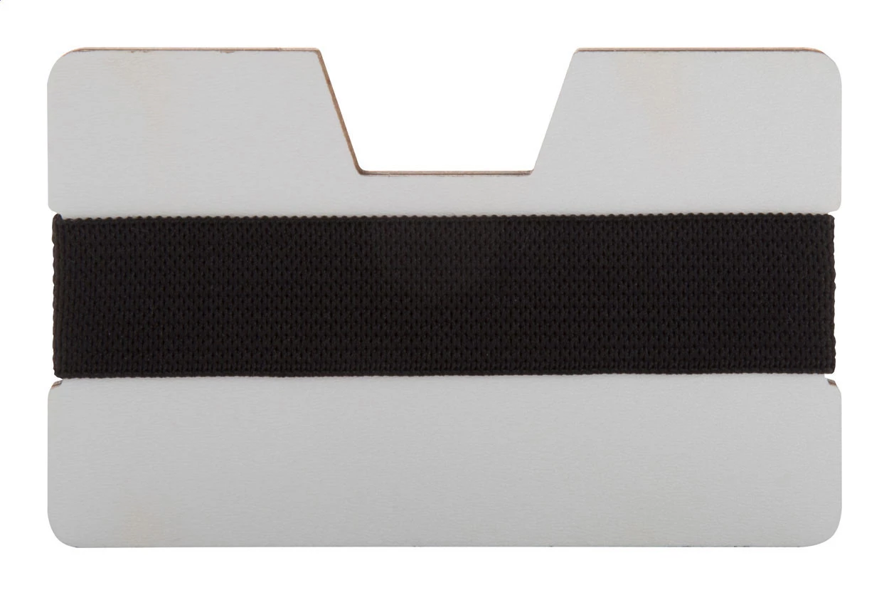 HDF wood card holder wallet with elastic rubber strap. Ideal for UV LED printing.