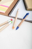 Cork covered recycled paper ballpoint pen with plastic parts. With blue refill.