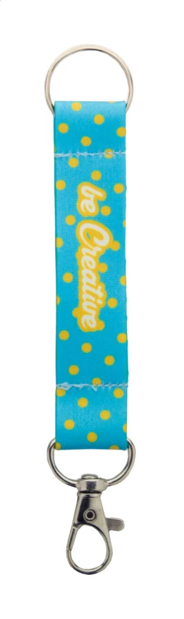 Custom made, RPET polyester mini keyring with sublimation printed graphics on both sides. With metal carabiner and ring. MOQ: 100 pcs.
