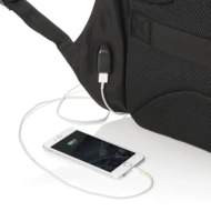 This Swiss Peak anti-theft 15.6” laptop backpack is a stylish option for your every day commute. The hidden zipper closures and secret pockets will keep all your belongings safe. Connect your powerbank easily to the integrated USB charging port and charge your phone or tablet on the go. Stay visible at night thanks to the reflective safety strips. With luggage strap. With AWARE™ tracer that validates the genuine use of recycled materials. Each bag saves 14 litres of water and has reused 24.4 0.5L PET bottles. 2% of proceeds of each AWARE™ product sold will be donated to Water.org. PVC free. Registered design®