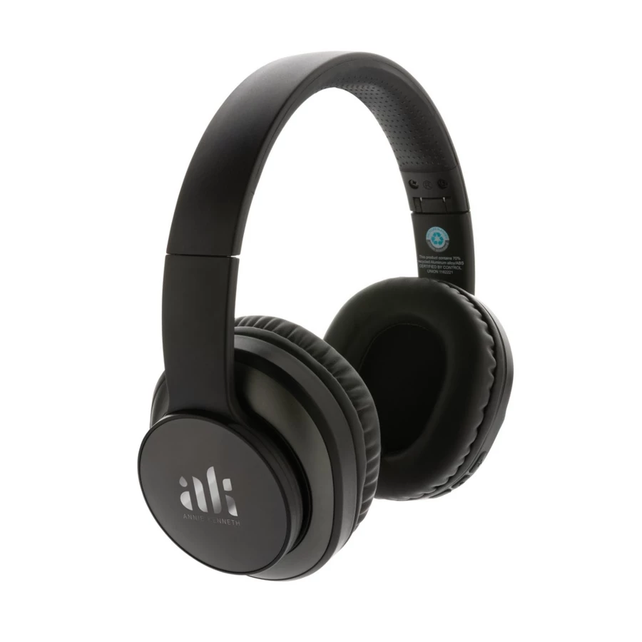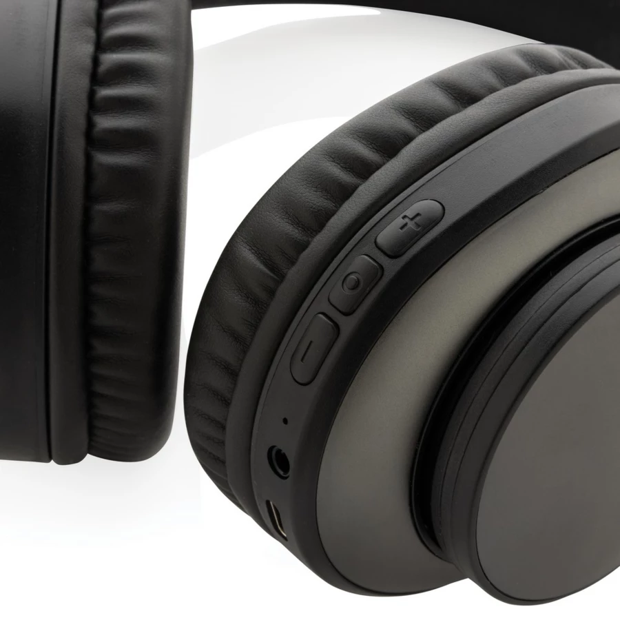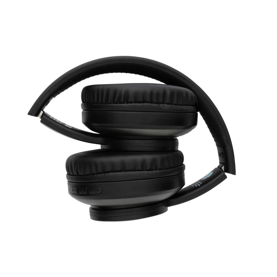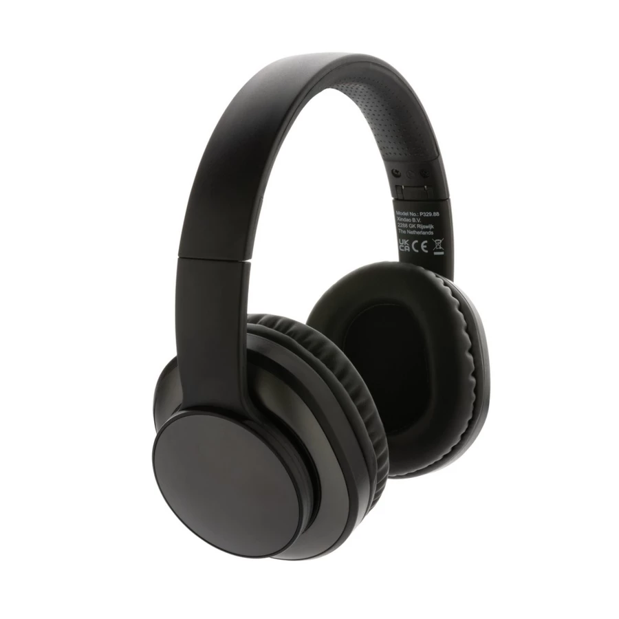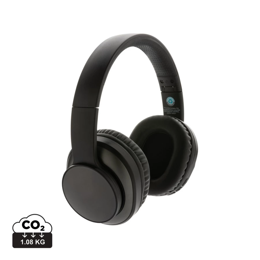 Foldable wireless headphone and strong bass. Made with RCS (Recycled Claim Standard) certified recycled aluminium and ABS. Total recycled content: 70% based on total item weight. RCS certification ensures a completely certified supply chain of the recycled materials. Aluminium does not lose its characteristics in the recycling process and can be recycled endlessly. Including recycled type C charging cable made from RCS certified recycled aluminium, TPE and PET. The 600 mah battery allows a playtime up to 15 hours and can be fully re-charged in 2 hours. With BT 5.3 for smooth connection up to 10 metres. Packed in FSC® mix packaging. Item and accessories 100% PVC free.