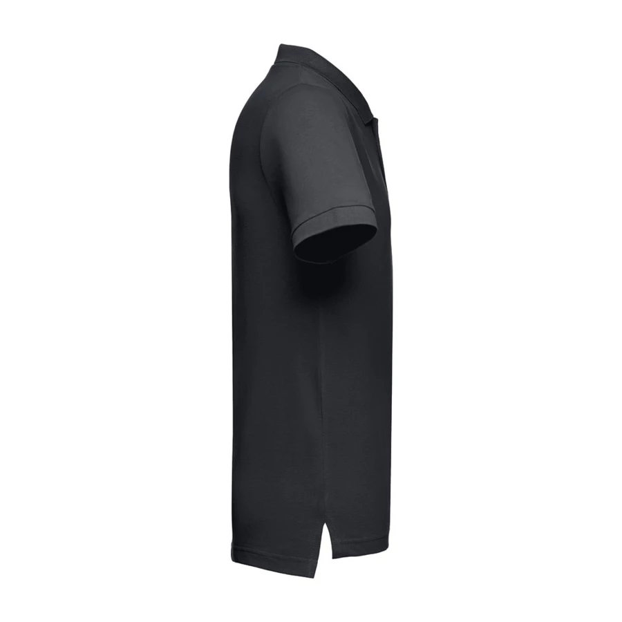 100% cotton carded piqué mesh short-sleeved men's polo (195 g/m²) (colour 183: 85% cotton/15% viscose). With a regular fit, this polo has rib collar and sleeves. The collar is reinforced with piqué ribbon. On the front, next to the collar, there are three matching colour buttons (extra button inserted in the inner seam). Piece cut and sewn with small side vents at the hem of the polo. Sizes: S, M, L, XL, XXL