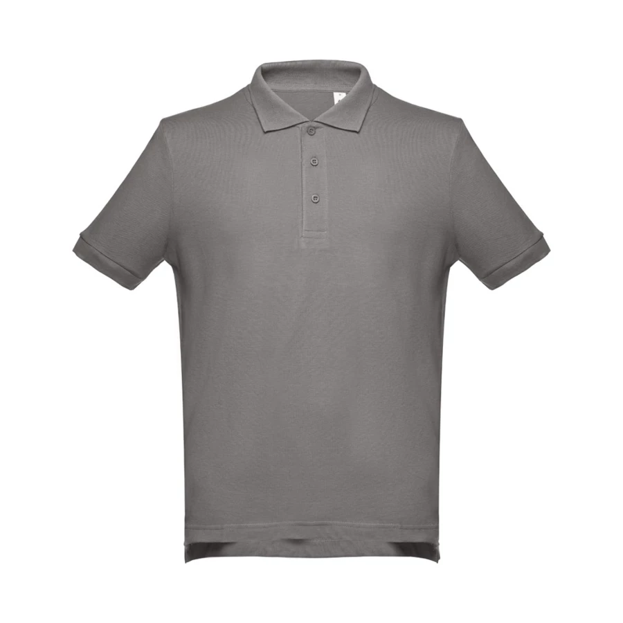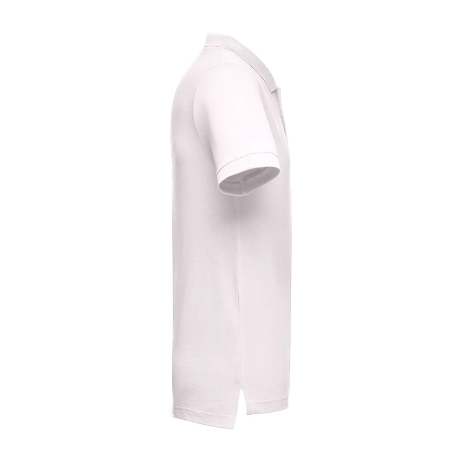 100% cotton carded piqué mesh short-sleeved men's polo (195 g/m²) (colour 183: 85% cotton/15% viscose). With a regular fit, this polo has rib collar and sleeves. The collar is reinforced with piqué ribbon. On the front, next to the collar, there are three matching colour buttons (extra button inserted in the inner seam). Piece cut and sewn with small side vents at the hem of the polo. Sizes: S, M, L, XL, XXL