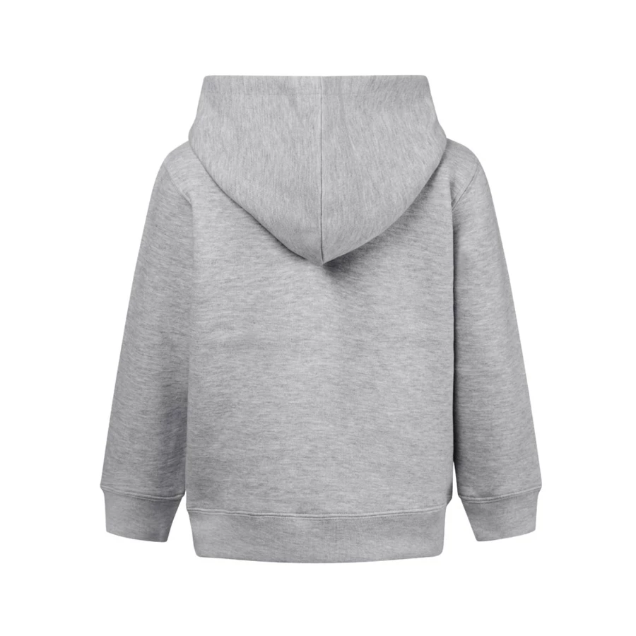 Enzyme-treated children's jacket in America terry (50% cotton using sustainable farming practices) and 50% recycled polyester (320 g/m²). Hood without drawstrings and lined in jersey in the same colour as the jacket, complying with European Union safety standards. Contains 1x1 rib cuffs and bottom, 2 side pockets, zipper with slider, puller and carded interior. Sizes: 4, 6, 8, 10, 12