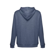 50% cotton and 50% polyester men's sweatshirt (320 g/m²) with carded interior. The hood is lined and contains colour cord closure. The front area has two marsupial pockets with plastic cover closure. Piece with cuffs and ribbon waistband. Sizes: S, M, L, XL, XXL