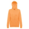 50% cotton and 50% polyester women's sweatshirt (320 g/m²) with carded interior. The hood is lined and contains colour cord closure. The front area has two marsupial pockets with plastic cover closure. Piece with cuffs and ribbon waistband. Sizes: S, M, L, XL, XXL