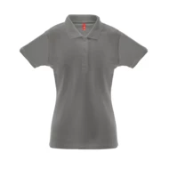 35% carded cotton and 65% polyester (200 g/m²) short-sleeve pique mesh women polo shirt (200 g/m²) (colour: 183: 85% cotton/15% viscose). Fitted waist polo with rib collar and sleeves, the collar is reinforced with pique knit ribbon. Contains a reinforced collar with 3 matching coloured buttons (extra button in the inner seam). Piece cut and sewn. Sizes: S, M, L, XL, XXL