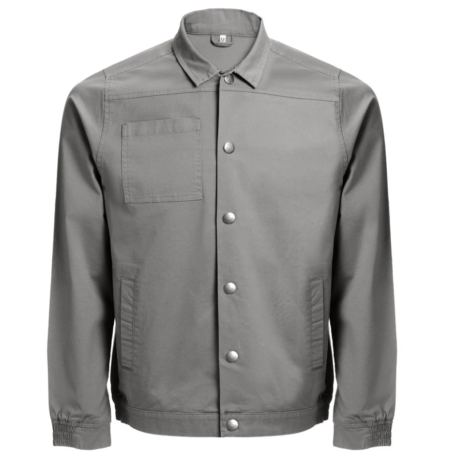 98% cotton and 2% elastane jacket (240 g/m²). Modern cut, it contains 2 darts on the back and elastic on the wrist and waist. Buttoning done through snap buttons. Includes 2 back pockets and 1 chest pocket. Sizes: S, M, L, XL, XXL, 3XL