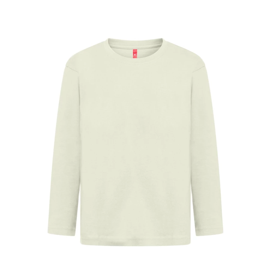 Long-sleeved T-shirt (150 g/m²), with enzymatic treatment, for children in jersey fabric (100% cotton using sustainable farming practices). 1x1 rib collar with jersey reinforcement band. Tubular T-shirt with regular cut and double stitching on the sleeves and bottom of the article. Sizes: 2, 4, 6, 8, 10, 12
