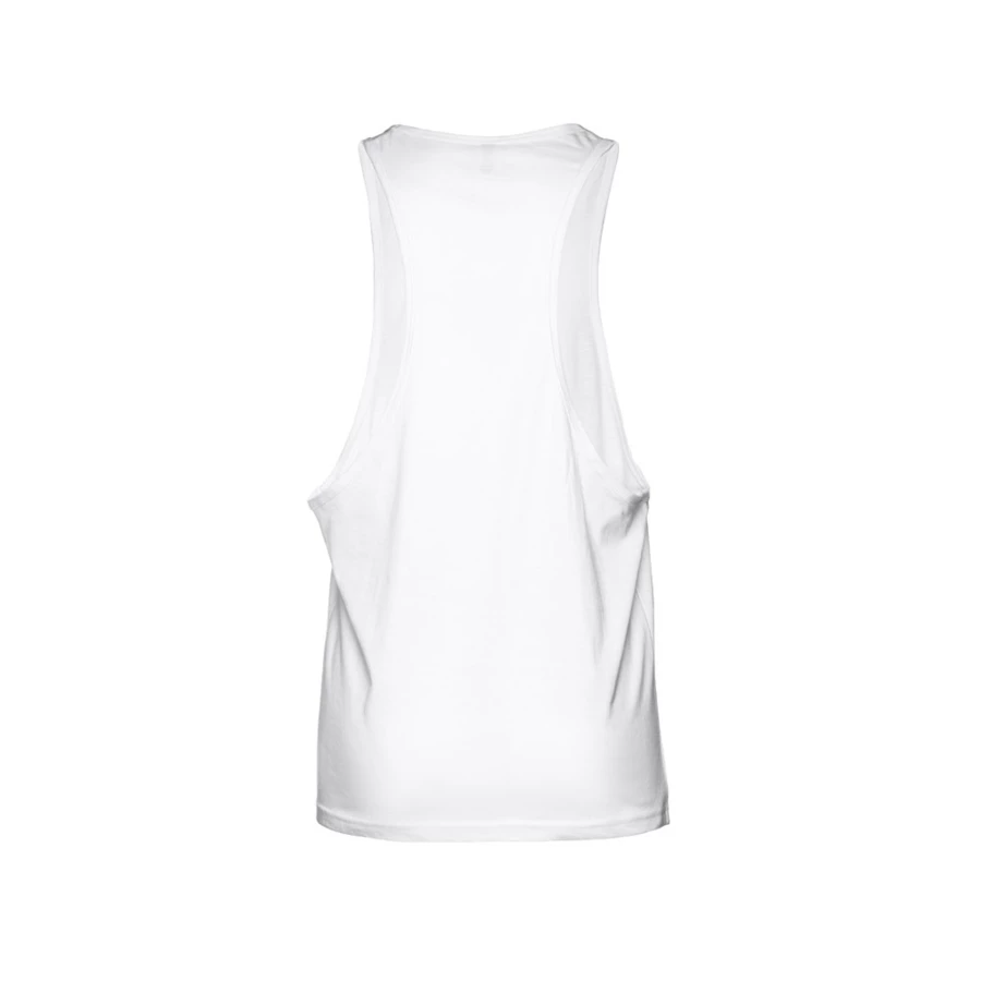 100% cotton men's sleeveless jersey (140 g/m²) with carded cotton yarn. Wide armholes and round collar, with bias tape on the armholes and neckline. Piece cut and sewn with double seam at the hemline. Sizes: XS, S, M, L, XL, XXL