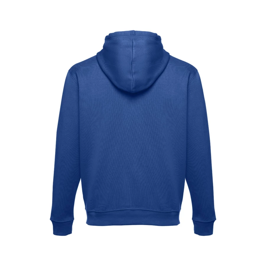 Sweatshirt (unisex) 50% cotton and 50% polyester (320 g/m²) with carded interior. Features rib 1x1 cuffs and waistband, marsupial pocket and hood with contrasting colour strings. Sizes: S, M, L, XL, XXL