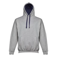 Sweatshirt (unisex) 50% cotton and 50% polyester (320 g/m²) with carded interior. Features rib 1x1 cuffs and waistband, marsupial pocket and hood with contrasting colour strings. Sizes: S, M, L, XL, XXL
