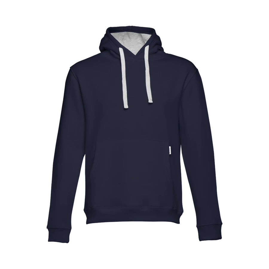 Sweatshirt (unisex) 50% cotton and 50% polyester (320 g/m²) with carded interior. Features rib 1x1 cuffs and waistband, marsupial pocket and hood with contrasting colour strings. Sizes: S, M, L, XL, XXL