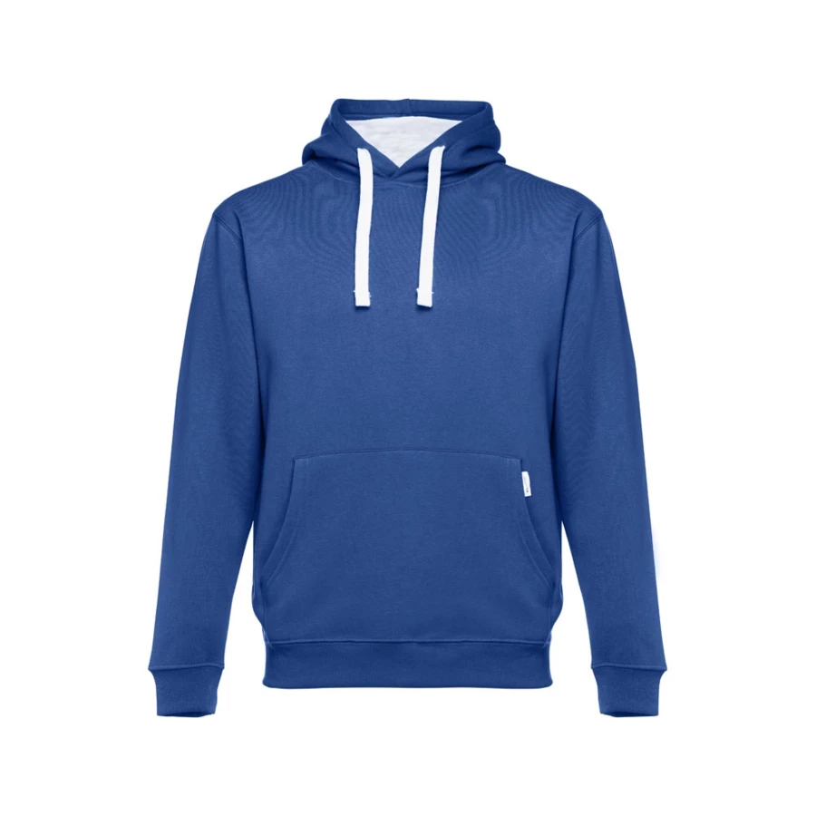 Sweatshirt (unisex) 50% cotton and 50% polyester (320 g/m²) with carded interior. Features rib 1x1 cuffs and waistband, marsupial pocket and hood with contrasting colour strings. Sizes: S, M, L, XL, XXL