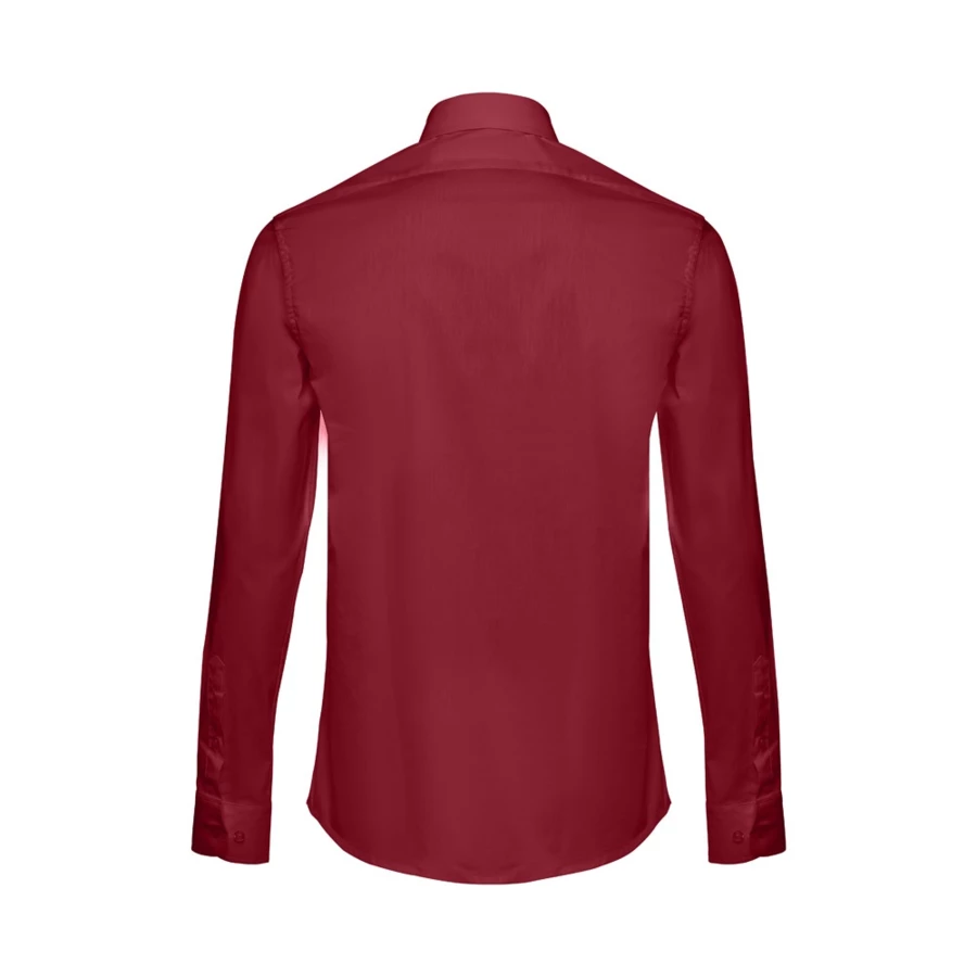 Long-sleeved men's shirt in 68% cotton, 28% polyamide and 4% elastane (115 g/m²). Long sleeve with 1 pleat and adjustable cuffs with 2 buttons. Placket with 7 buttons in matching colour. Sizes: S, M, L, XL, XXL