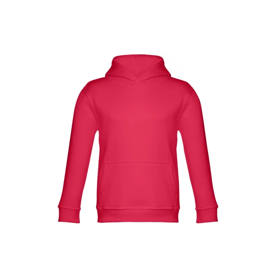 Kids' hooded sweatshirt (unisex) in 50% cotton and 50% polyester (320 g/m²) with carded interior. Jersey lined hood, complying with the European Union safety standards. Sweatshirt with marsupial pocket and 1x1 Rib cuffs and waistband. Sizes: 2, 4, 6, 8, 10, 12