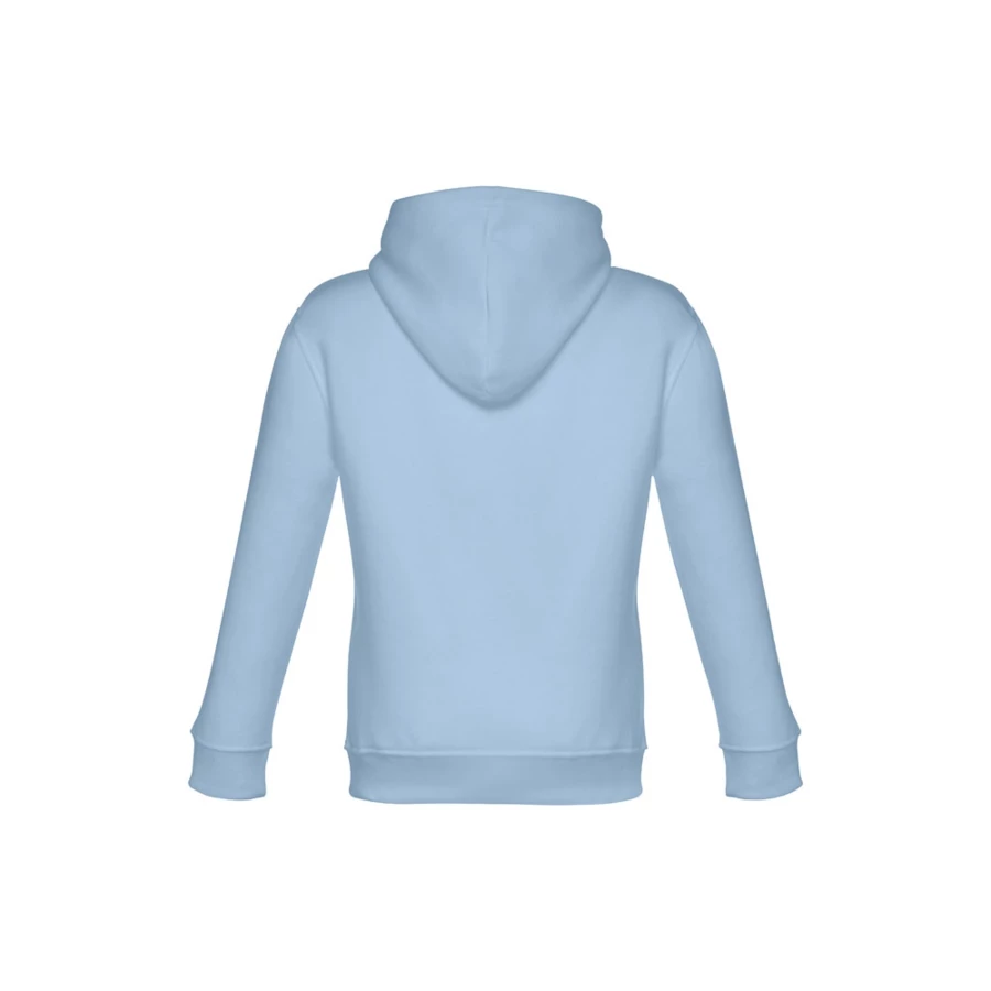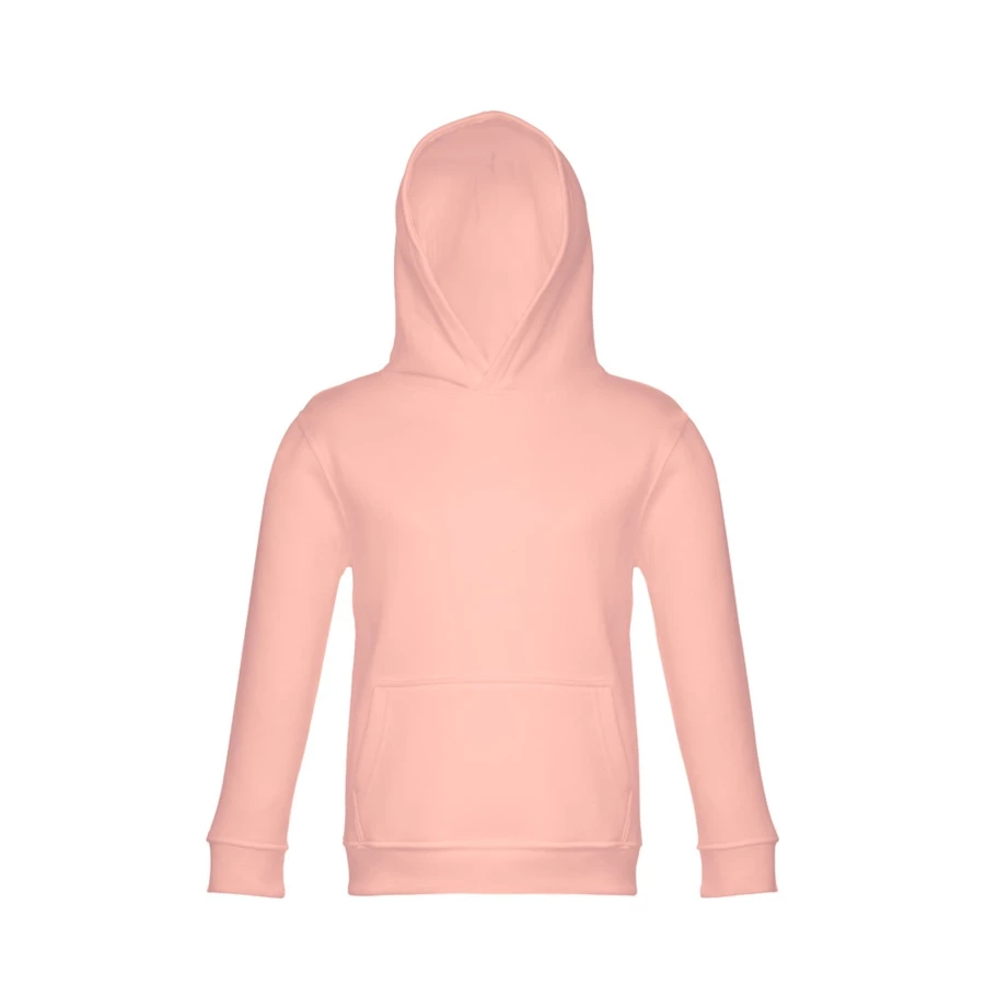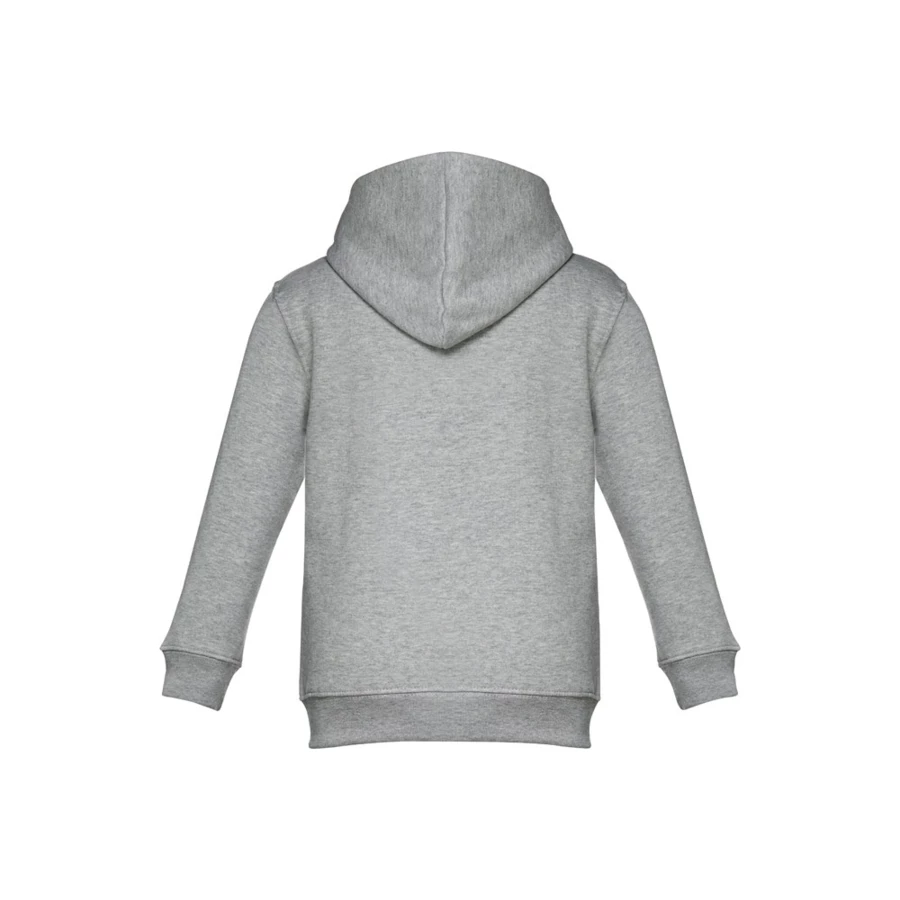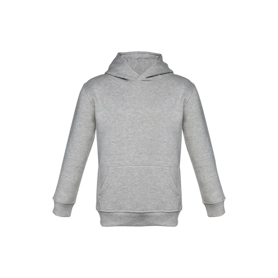 Kids' hooded sweatshirt (unisex) in 50% cotton and 50% polyester (320 g/m²) with carded interior. Jersey lined hood, complying with the European Union safety standards. Sweatshirt with marsupial pocket and 1x1 Rib cuffs and waistband. Sizes: 2, 4, 6, 8, 10, 12