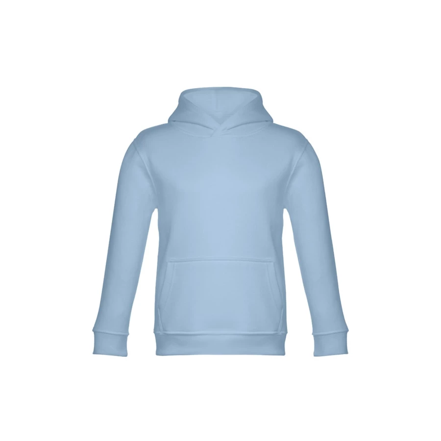 Kids' hooded sweatshirt (unisex) in 50% cotton and 50% polyester (320 g/m²) with carded interior. Jersey lined hood, complying with the European Union safety standards. Sweatshirt with marsupial pocket and 1x1 Rib cuffs and waistband. Sizes: 2, 4, 6, 8, 10, 12