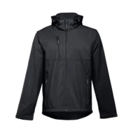 Softshell men's jacket in 96% polyester and 4% elastane (280 g/m²), with two layers, removable hood and water resistant coating. Fleece lined jacket with 2 front pockets and diagonal chest pocket, all with zips. Adjustable cuffs with self-adhesive hook and loop fastener. Removable hood with drawstring and self adhesive hook and loop fastener to attach to the collar. Rounded hem on the back. Sizes: S, M, L, XL, XXL