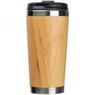Double-walled stainless steel mug with bamboo coating, leakproof, and 400ml capacity. Your logo will be engraved on the mug.