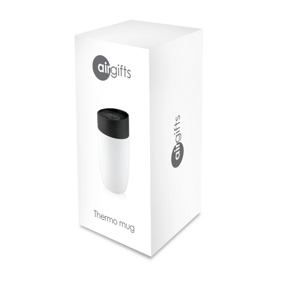 Air Gifts thermo mug 330 ml, features stainless steel double walls with copper and vacuum insulation that slow down the release of temperature to the surroundings, functioning like a thermos, plastic lid with a button to open/close the mouthpiece, enabling one-handed use, matte finish, keeps beverages hot for up to 15 hours +leakproof