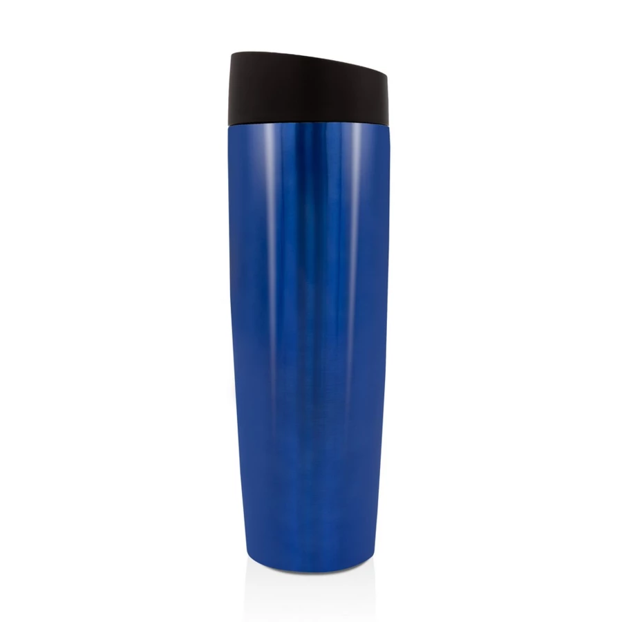 Air Gifts thermo mug 500 ml, features stainless steel double walls with copper and vacuum insulation that slow down the release of temperature to the surroundings, functioning like a thermos, plastic lid with a button to open/close the mouthpiece, enabling one-handed use, shiny finish, keeps beverages hot for up to 20 hours +leakproof