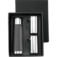 Travel set in gift box, double walled thermos 500 ml and 2 mugs 300 ml, keeps beverages hot for up to 20 hours +leakproof