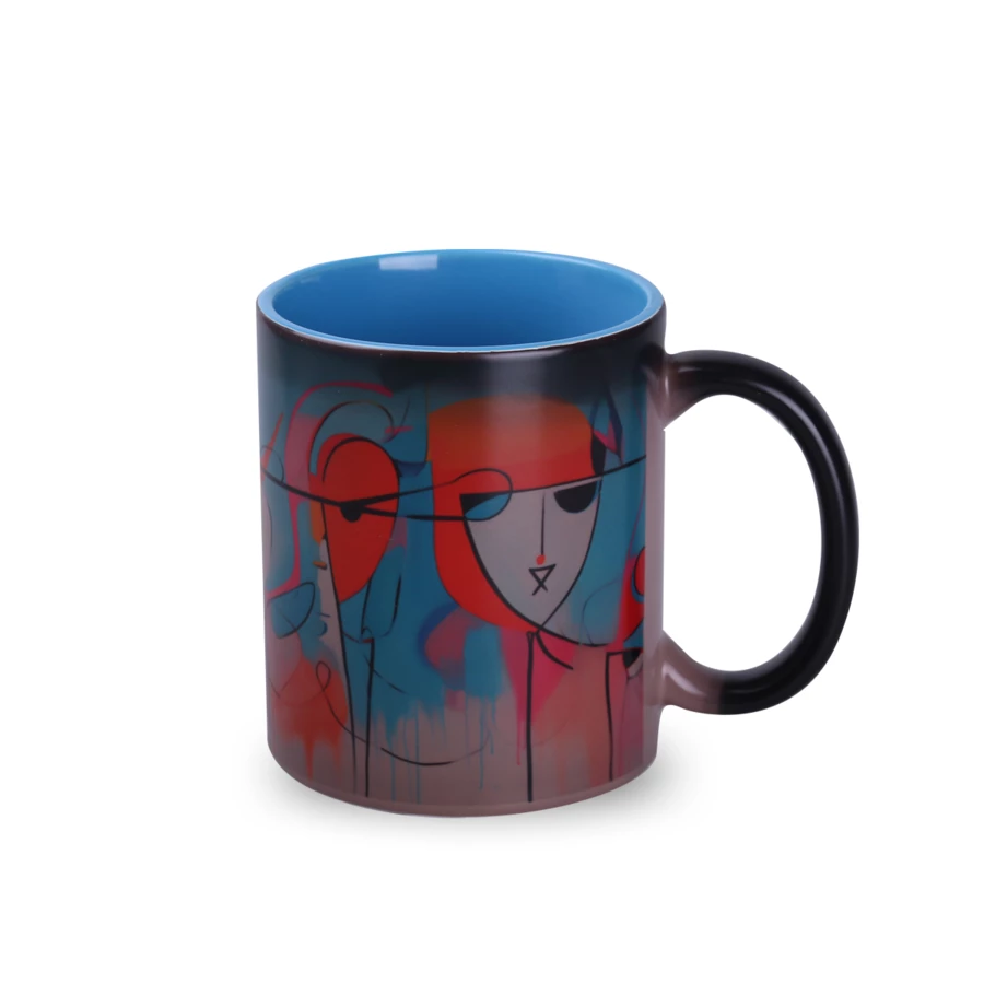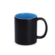 Classic cylindrical shape with a satin-touch black surface. A well-known mug model on which a photo-quality print emerges under the influence of hot liquid. It has interiors in several fashionable colors to choose from. The matte outer surface "hides" the print even better when the mug is cold.