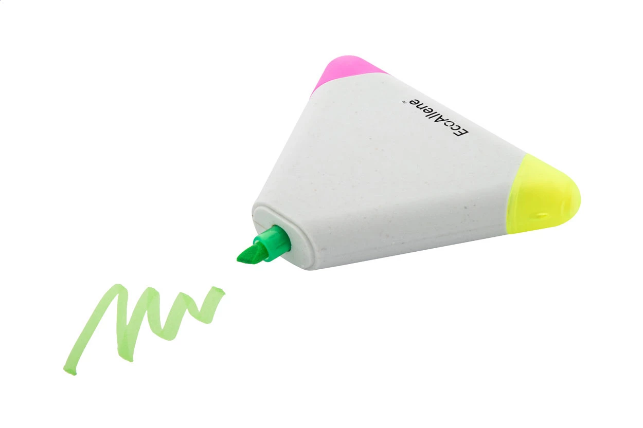 Triangle shaped highlighter with 3 colours in EcoAllene® recycled plastic. EcoAllene® is a new and innovative material derived from recycling beverage cartons.