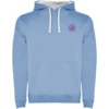 Two-colour hoodie with double fabric. Reinforced covered seams in collar and kangaroo style pocket. 1x1 elastane rib in cuffs and waistband. Removable label. The model is 120 cm and is wearing size 5/6.