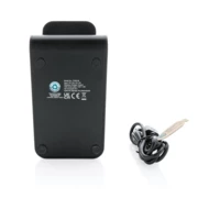 15W 3 in 1 wireless charging stand made with RCS (Recycled Claim Standard) certified recycled ABS. Total recycled content: 60% based on total item weight. RCS certification ensures a completely certified supply chain of the recycled materials. This wireless charger, charges your phone in the fastest way possible. The charger comes equipped with a dual coil 15W wireless charger, 5W wireless charger at the back and on top a 3W iWatch charger. Including 120 cm type C charging cable made from RCS certified recycled TPE. Urban Vitamin items are made without PVC and packed in plastic reduced packaging. Input: 5V/3A, 9V/2A 5V/1A, 9V /1.1A