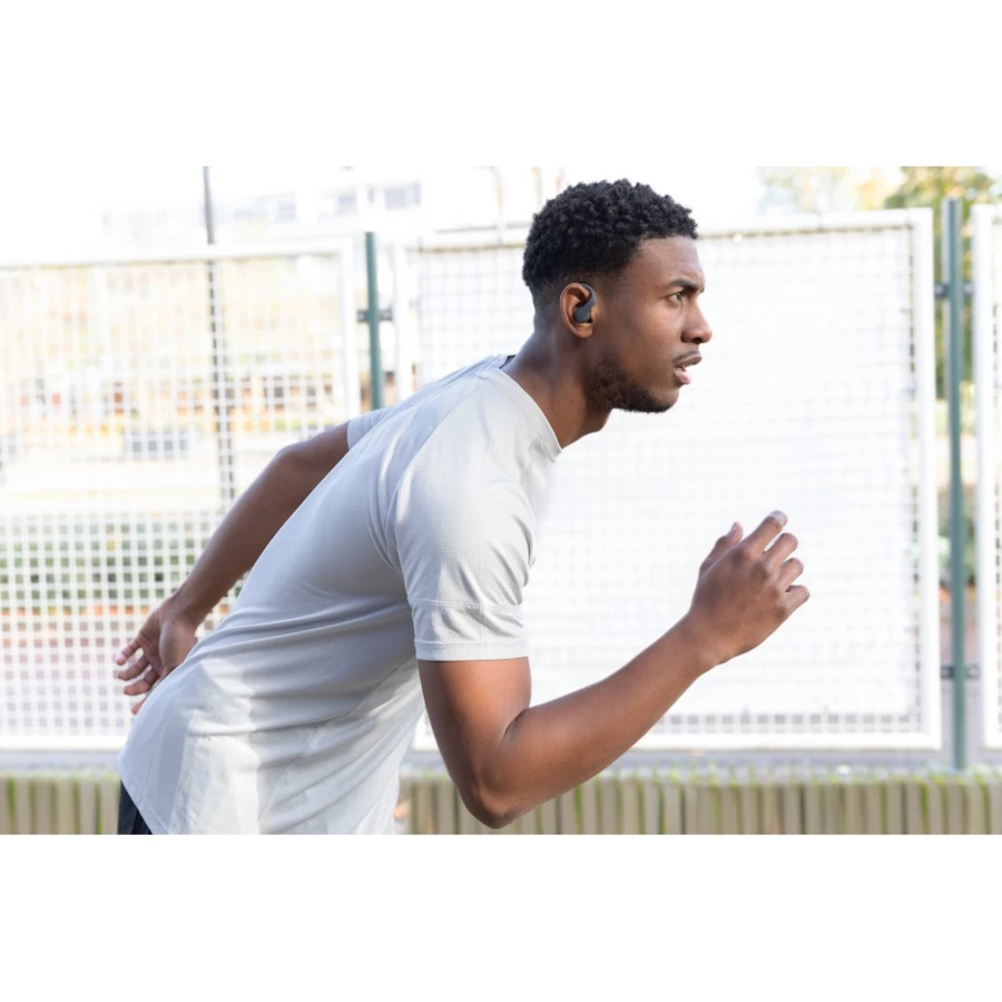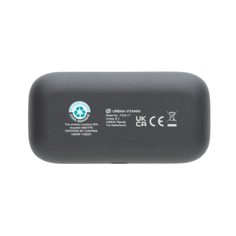 Outperform yourself and take your fitness to the next level with these perfect fit work out earbuds. The customisable, perfect fit ear hooks are adjustable with multiple ear tip options for extended comfort, and are made to stay in place, no matter how intense your workout is. These lightweight earbuds are built for peak performance with a sturdy design for IPX5-rated sweat, dust and water resistance. With up to 8 hours hours of listening time due to advanced BT 5.3 in each earbud and powerful, balanced sound, you’ll always have your music to motivate you. The earbuds and 600 mah charging case are made with made with RCS (Recycled Claim Standard) certified recycled ABS/TPE. Total recycled content: 55 % based on total item weight. RCS certification ensures a completely certified supply chain of the recycled materials. The earbuds can be re-charged 3 times fully in the charging case. Urban Vitamin items are made without PVC and packed in in plastic reduced packaging.