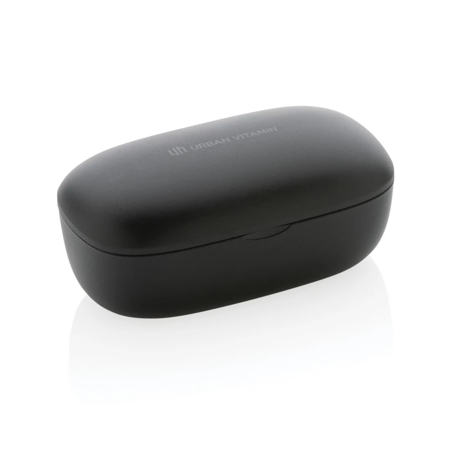 When you open the case and put in the earbuds, the sound hits you. The earbuds and portable charging case are designed to be able to carry no matter where you go and fit easily into your pocket. The comfortable earbuds have up to 6 hours of listening time and the charging case allows up to 20 hours of playback. Enough to keep you going all day! When receiving a call simply answer it in stereo sound thanks to the ENC integrated microphone for perfect calling quality. The IPX 4 rating makes the earbuds weather proof so no worries to take them outside. Earbuds and charging case made with RCS (Recycled Claim Standard) certified recycled ABS. Total recycled content: 55 % based on total item weight. RCS certification ensures a completely certified supply chain of the recycled materials. Urban Vitamin items are made without PVC and packed in plastic reduced packaging.