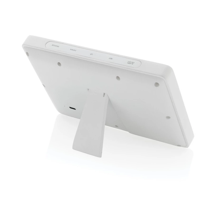 Large weather station made with RCS (Recycled Claim Standard) certified recycled ABS and FSC® 100% bamboo. Total recycled content: 65 % based on total item weight. RCS certification ensures a completely certified supply chain of the recycled materials. With high quality LED screen. Functions: clock, alarm, calendar, temperature, humidity and moon phase function, 12/24 hour option, Fahrenheit/Celsius and humidity recording. Including 100 cm type C charging cable made from RCS certified recycled TPE. Packed in FSC® mix kraft box.