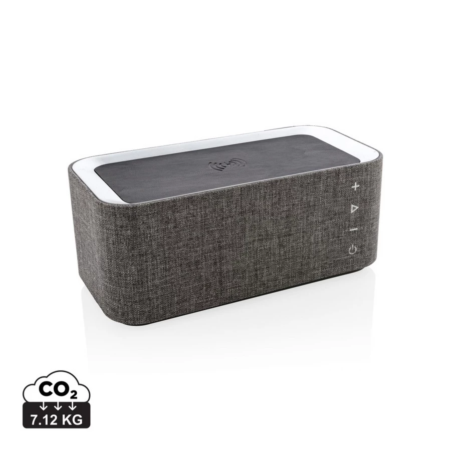 The Vogue 6W wireless charging speaker combines two essential functions of modern life: listening to your favourite music and charging your mobile device without any wires. The trendy fabric design is perfect for your desk, at home or on the go. The speaker uses wireless BT 3.0 for smooth connection and has an operating distance up to 10 metres. With handsfree function and pick up. The 4.000 mAh battery allows you to play music for up to 10 hours or charge your mobile phone twice (depending on the size of your phone’s battery) In case your phone doesn’t support wireless charging you can also use the USB port on the back to charge your phone in the traditional way with an cable. When using both functions it is recommended to keep the item connected to a power source via the included 150 cm micro USB cable. Input: 5V/1A. Output: 5V/1A. Wireless output: 5V/1A 5W. Registered design®