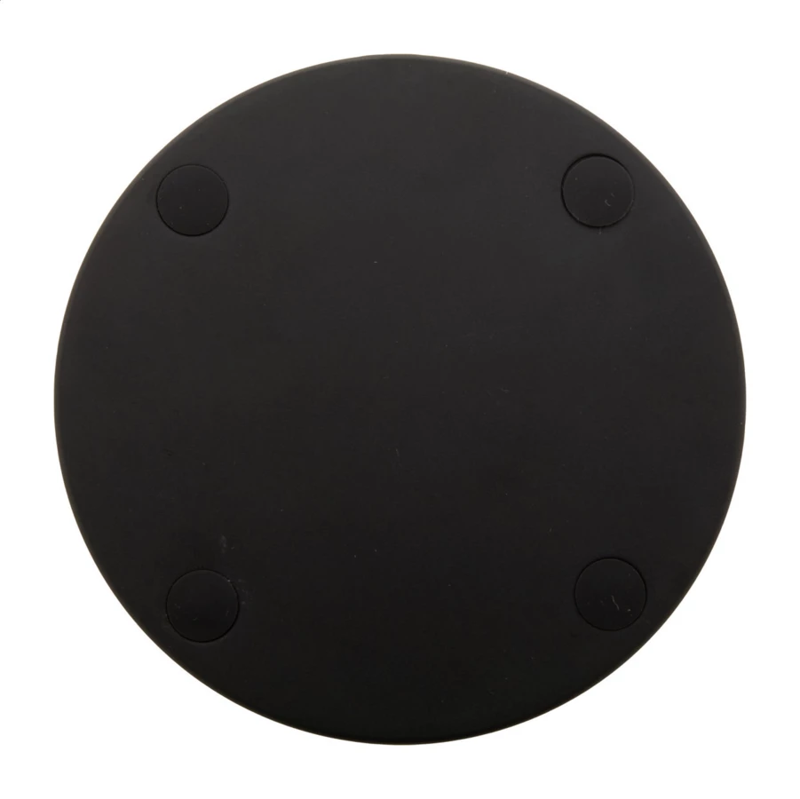 Recycled aluminium wireless fast charger (15W). Including USB charger cable.