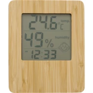 Weather station with clock, date, temperature, humidity, bamboo front
