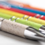 Nature line ball pen with in wheat straw, to encourage the use of natural raw materials and reducing contaminant emissions. Metal clip and chromed accessories. With push-up mechanism, jumbo cartridge and blue ink refill. Available in a wide range of nature colors.